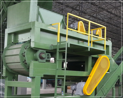 폐 PET 압축되어 투입된 덩어리를 링크 체인의 회전으로 해단하는 기계.