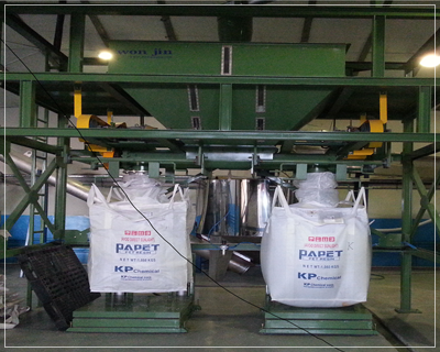 완성된 재활용 원료의 중량을 자동으로 측정하여 출하하는 설비